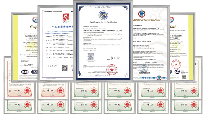 先后通过ISO9001国际质量管理认证、ISO14001环境管理认证、ISO45001职业健康安全管理认证、GCCA产品质量安全认证、机电产品售后服务认证、TÜV SÜD GREATER CHINA认证、CE认证--MD(2006/42/EC)、LVD(2014/35/EU)、EMC(2014/30/EU)及40多项专利。